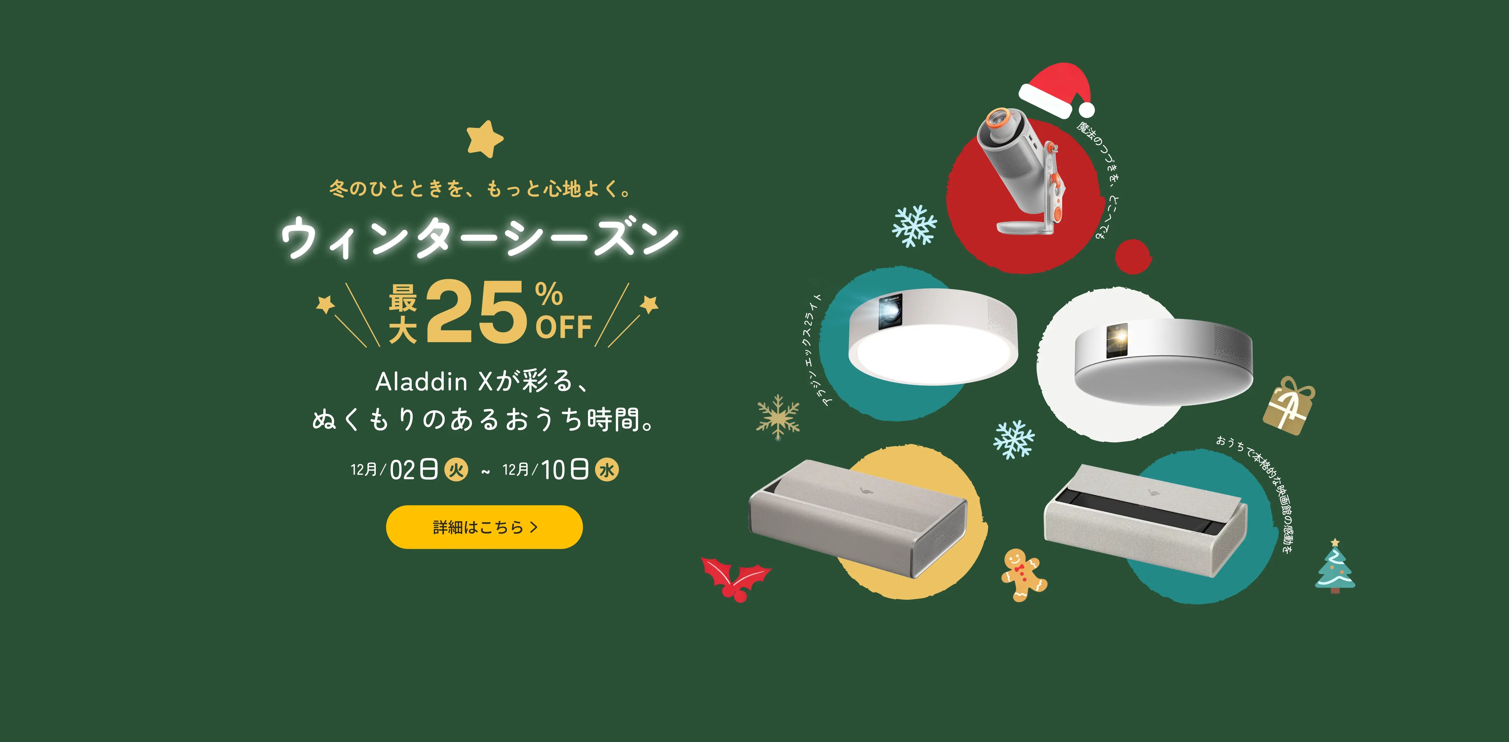 Aladdin X(アラジン エックス)は、2018年の発売以来、多くのお客様の大切な思い出に寄り添ってきました。結婚プロポーズ、サプライズのお誕生日祝いなど、お客様の数だけ思い出があります。私たちは、心躍る映像やコンテンツを通じて、大人から子供まで、おうちでの日々が大切な思い出に変わる魔法の空間づくりに貢献すべく、今後、お客様に楽しんでいただける企画を実施していきます。