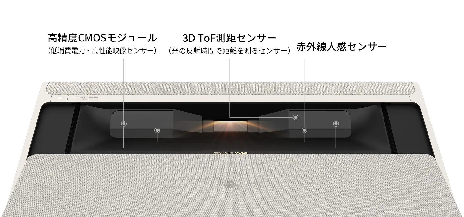CMOSモジュール、3D ToFモジュール、赤外線人感センサーなどの高性能な技術を搭載し、映像の中断を気にせず高速で最適な補正が行われます。常にクリアな映像をスマートに楽しむことができます。