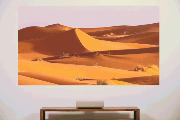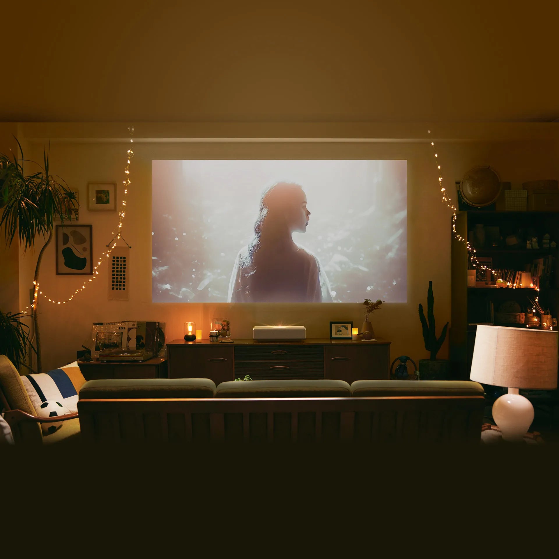 4K、100インチの大画面を映し出すことができるので、テレビのように大きなスペースを取ることなく、迫力の映像体験を楽しむことができます。