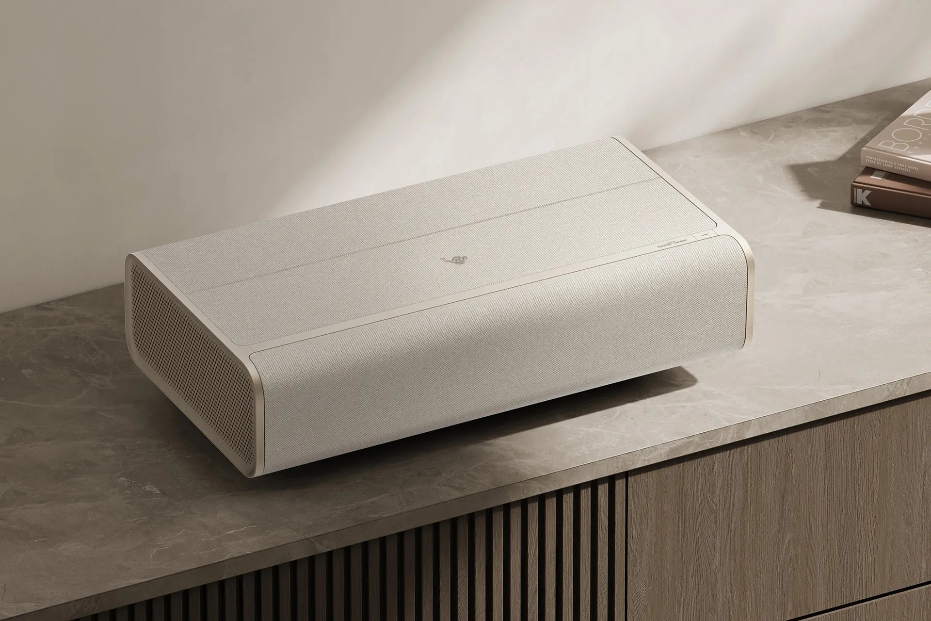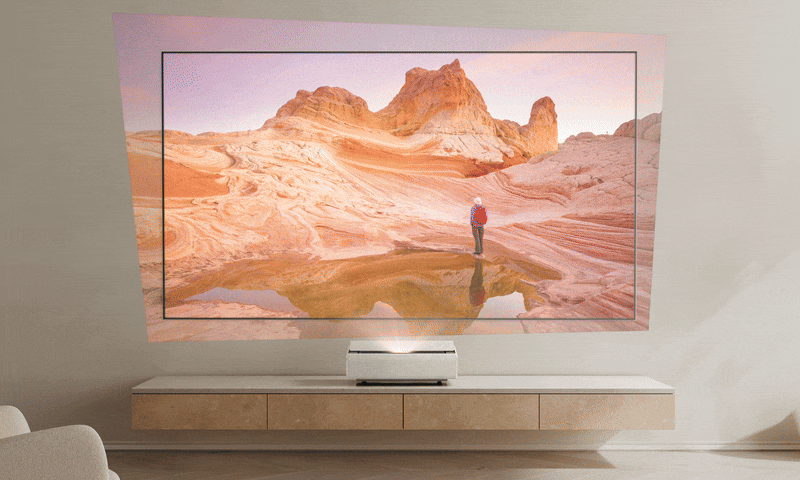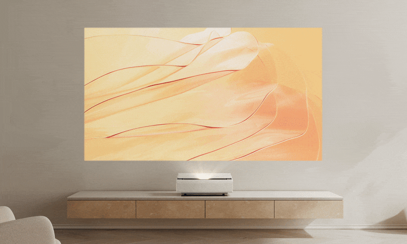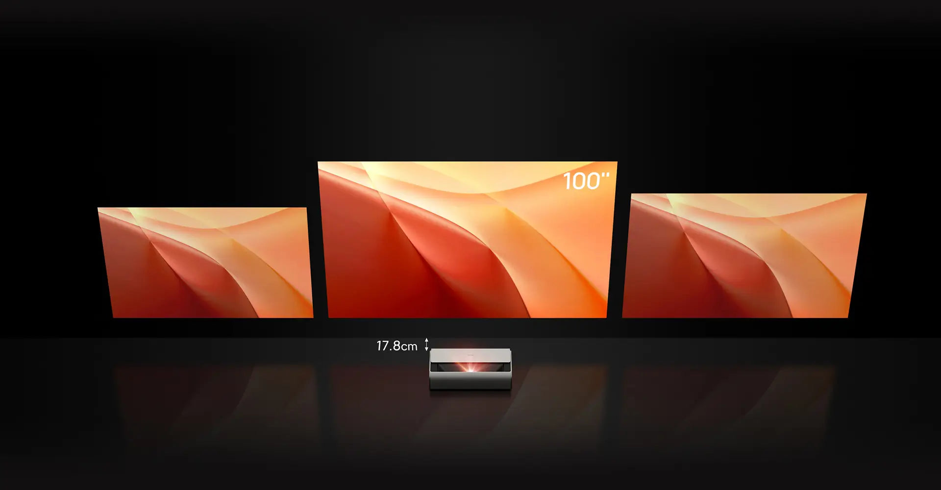 投射比0.177:1の超短焦点設計により、本体を壁からわずか17.8cm離すだけで