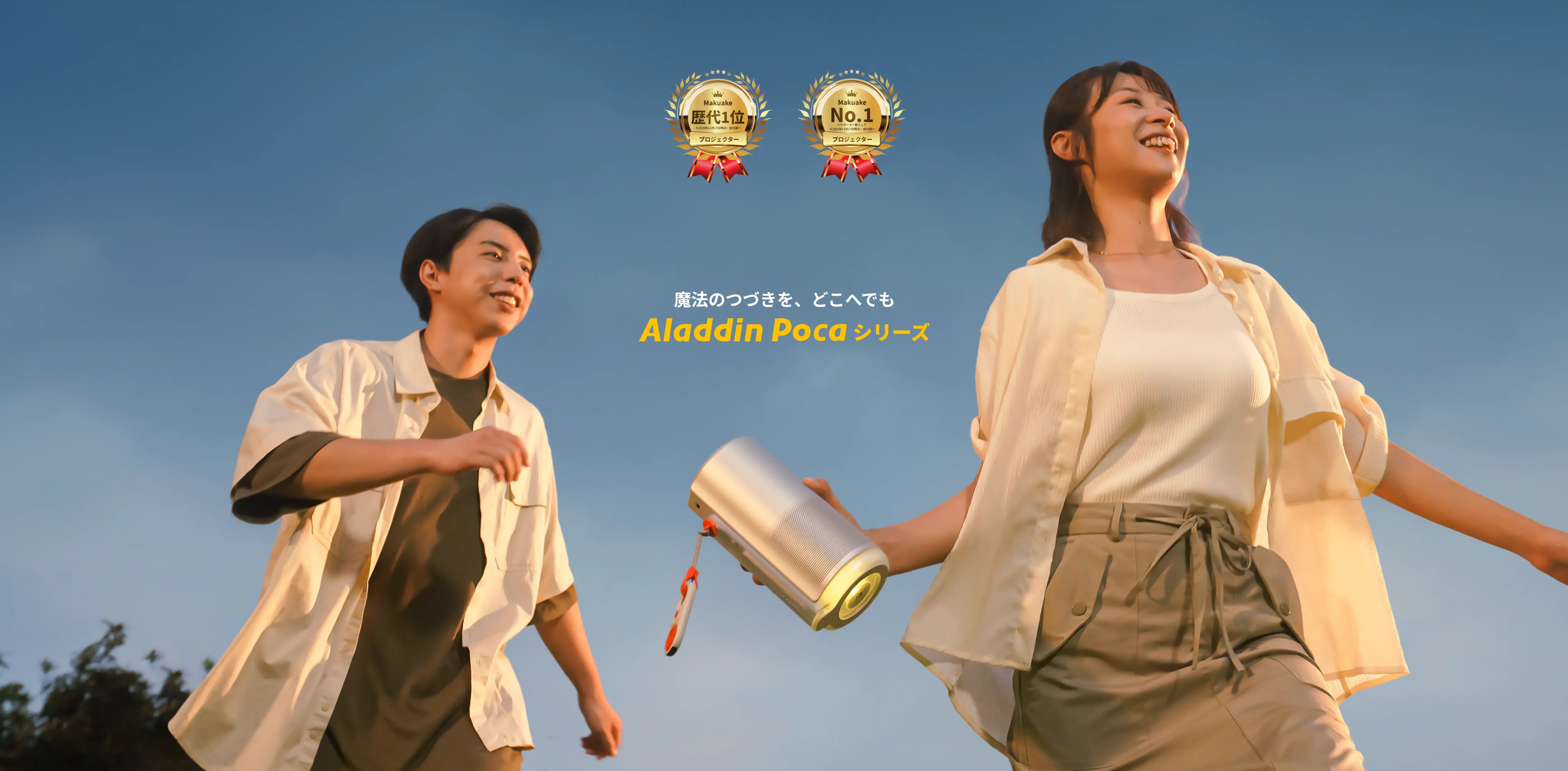 Aladdin Pocaシリーズは、現代のライフスタイルにおける多様なニーズに応えるために設計された、最先端のポータブルスマートプロジェクターです。コンパクトなサイズと内蔵バッテリーを備え、自宅での映画鑑賞はもちろん、アウトドアやさまざまな交流の場でも気軽に持ち運べます。革新的なAladdin Lensは、やわらかく流れるような光で空間を美しく演出し、心地よい雰囲気をもたらします。半透明のスタンドデザインには、Aladdin Xの最新光学技術とHarman Kardonのオーディオ技術を融合。映像と音がひとつになった豊かな体験を提供し、ポータブルプロジェクターの新たな基準を築いています。
