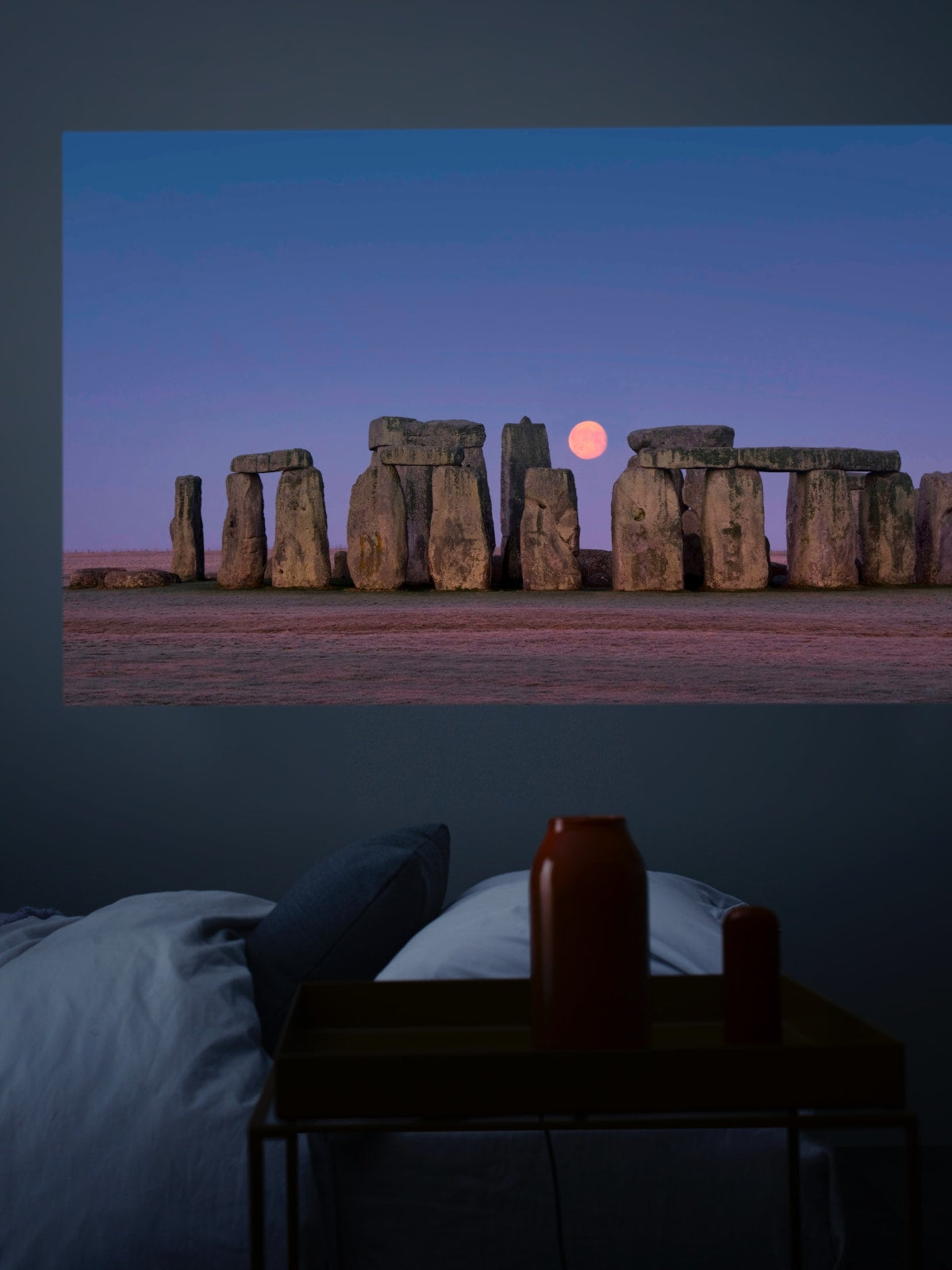 Vase」は置くだけで、あなたの部屋を貸切おうち映画館に変身させます。画面サイズは、最大100インチ。スマートフォンやタブレットのブルーライトとは違う、目に優しい反射光は睡眠前にも最適です。