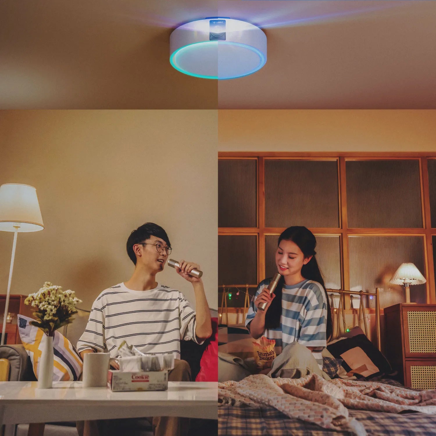 LEDシーリングライトの中に高性能プロジェクターと高音質スピーカーを搭載。