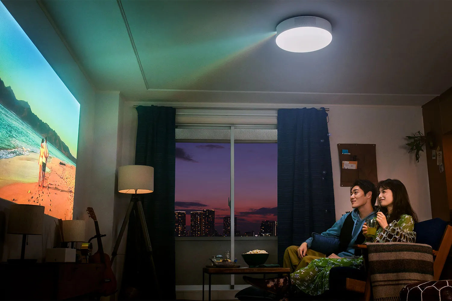 LEDシーリングライトの中に高性能プロジェクターと高音質スピーカーを搭載。