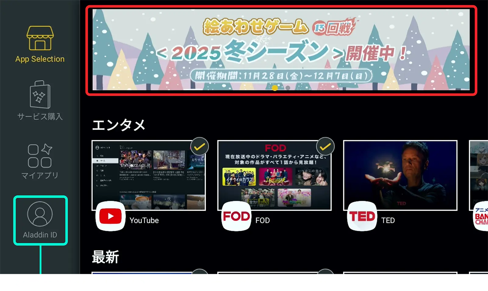Aladdin Store内のバナーから参加する